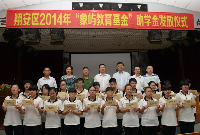 8月22日上午,翔安區(qū)2014年“象嶼集團(tuán)教育基金”助學(xué)金發(fā)放儀式在翔安一中高中部舉行,此次共有來自翔安一中和內(nèi)厝中學(xué)的85位今年考上大學(xué)的困難學(xué)生受到象嶼集團(tuán)資助,每人得到助學(xué)金5000元。翔安區(qū)政府副區(qū)長林奕田、象嶼集團(tuán)黨委副書記邵蕰默、翔安區(qū)教育局、翔安區(qū)教育基金會領(lǐng)導(dǎo)出席儀式并為學(xué)生頒發(fā)助學(xué)金。
